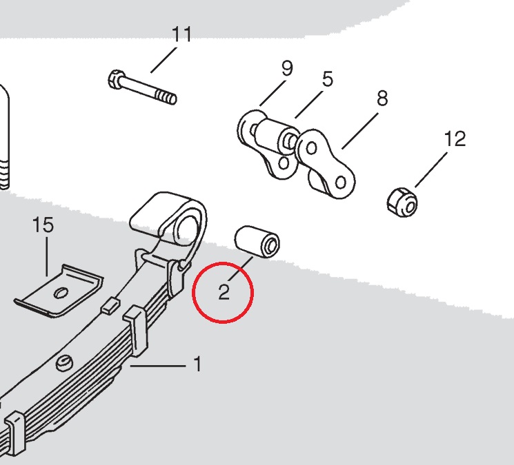 Silentblok listové pružiny, stejné pro přední i zadní část pružiny.